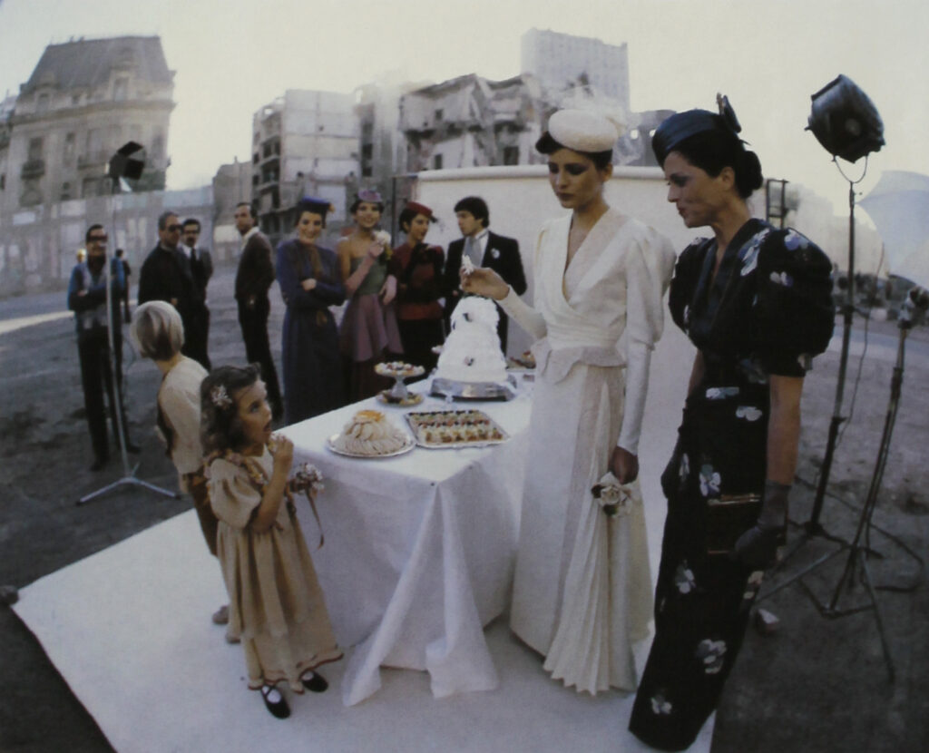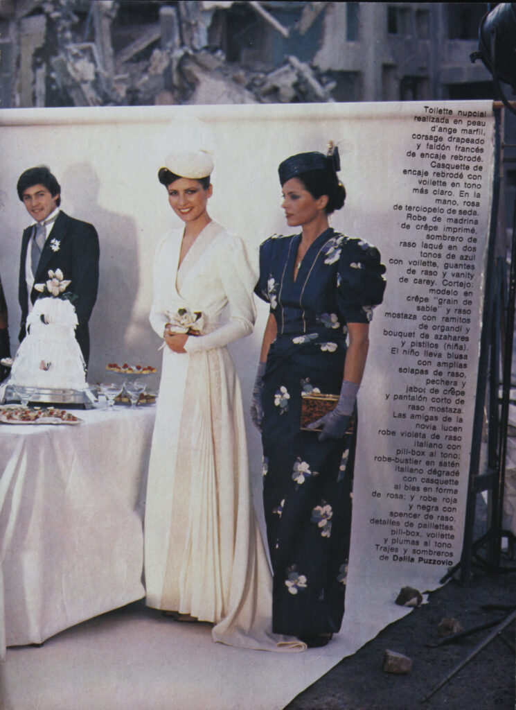 En 1979 Dalila Puzzovio realizó la producción fotográfica Mientras unos destruyen otros construyen para la revista Claudia. Considerada también una “acción performática”, se realizó durante la ampliación de la avenida 9 de Julio, en la que se destruyeron edificios históricos de la ciudad. En el registro fotográfico, puede verse la representación del casamiento de una pareja acompañada por sus testigos y cortejo, rodeada de un decorado de pompa, festín y regalos, con la ciudad en ruinas como telón de fondo.