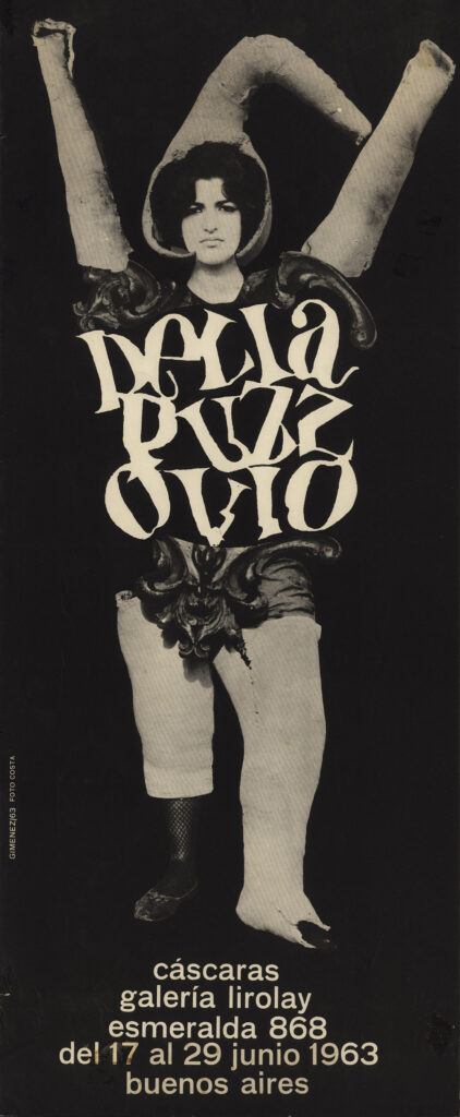 Reconocida artista del Pop Art, la moda y el arte conceptual, Dalila Puzzovio desarrolla su carrera en el panorama local e internacional desde los años 60, vinculada fundamentalmente al ambiente creativo del Instituto Di Tella de Buenos Aires. Su primeros trabajos con los emblemáticos “yesos” en la muestra “El hombre antes del hombre” (1962), da el puntapié inicial para un corpus de obras donde los objetos cobran un rol protagónico en su doble sentido como cosas externas pero también como cosas que le pasan al sujeto. Sus “Cáscaras” (1963) ortopédicas –restos de descarte obtenidas del Hospital Italiano- eran portadoras del aura de los cuerpos que las utilizaron, representaban un tipo de readaptación médica, una reelaboración de una situación traumática, un monumento al dolor que sugiere una reflexión sobre la ruptura y los órdenes fracturados.