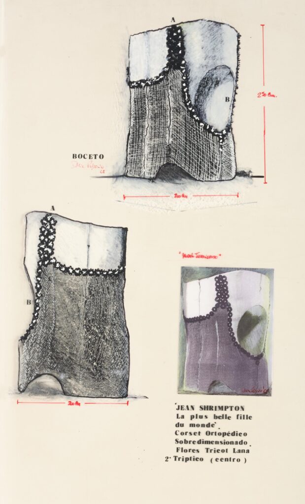En 1965, Puzzovio llevó al centro de la escena el diseño del espacio de exhibición de su propia obra. Invitada a participar del Premio Di Tella, presentó una gran instalación consistente en tres estructuras de dos metros por dos metros y medio, realizadas en alambre y yeso, que sugieren la forma de corsets gigantes. Elevadas sobre una plataforma, las estructuras son, al mismo tiempo, “obra” y dispositivo de montaje: son tanto aquello a ser visto como aquello que da a ver.