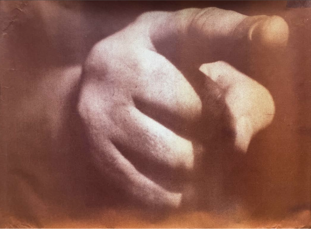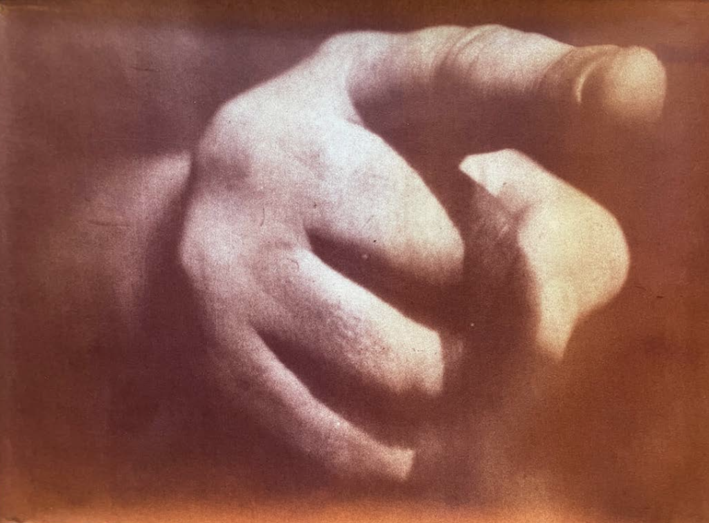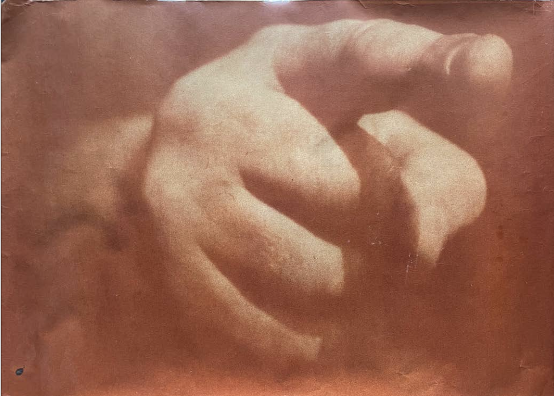 Heliografía sobre libro y cuchara junto a fotografía vintage