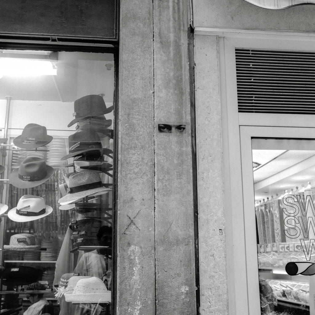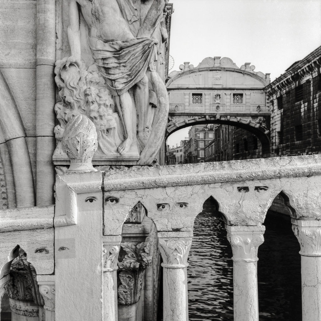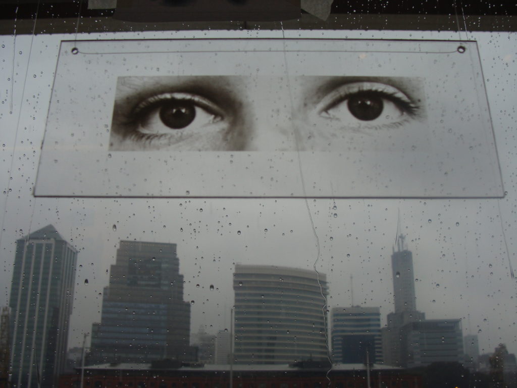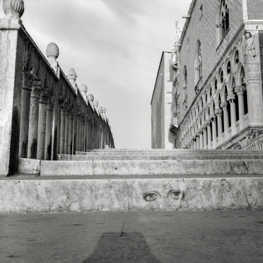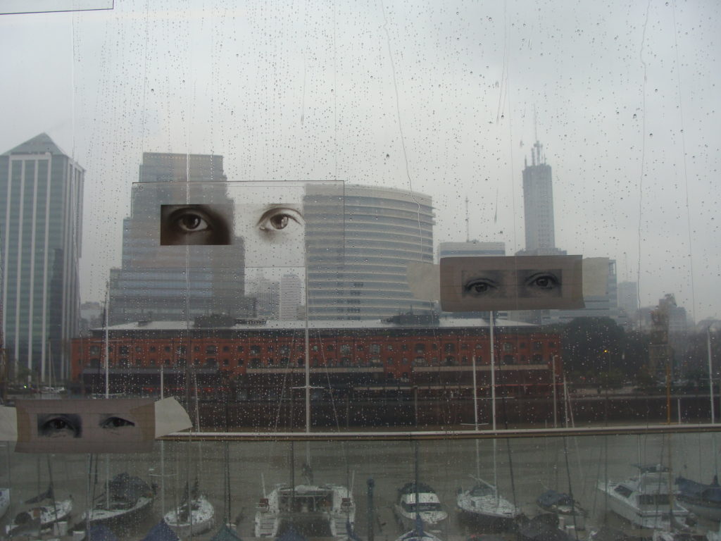 Los ojos, su registro y materialización en diferentes soportes construyeron una obra instalativa dentro del Fondaco dei Tedeschi (sede central del correo) a la vez que fueron expandidos en una interferencia urbana colocando estos retratos de miradas, anónimas, de diferentes culturas con la intención de interrogar al espectador sobre quién es quién en la escena urbana. Las ciudades, máquinas sociales, políticas y arquitectónicas, eran para la artista un conjunto de signos; un continuo urbano a la vez administrado y caótico, mecanizado por rutinas y rituales que revelan una trama visual y social dinámica y un mapa económico en transformación perpetua. ¿Dónde se inscribe la memoria de las ciudades? ¿Dónde se registra la mirada de sus habitantes, de sus viajeros, de sus invasores, de sus expulsados? (La obra se completaba con un sitio web -no operativo en al actualidad- en el cual se participaba abiertamente a los visitantes a enviar sus ojos y mensajes que se inscribían en una acción postal).