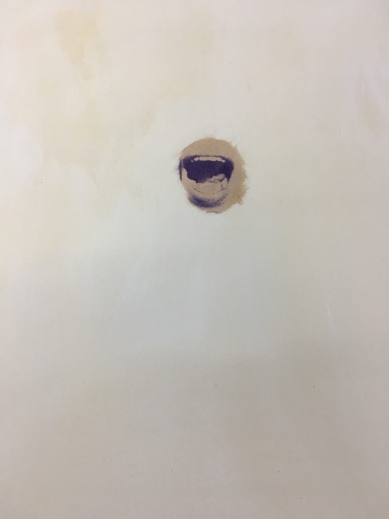 Bocanada es una serie compuesta por diversas obras que Graciela Sacco comenzó a realizar en 1993, en la cual se vale de fotografías que muestran primeros planos de bocas abiertas de par en par. Empleando la temprana técnica de la heliografía – que implica la transferencia de una imagen en una superficie tratada químicamente expuesta a la luz – la artista ha reproducido estas imágenes en
