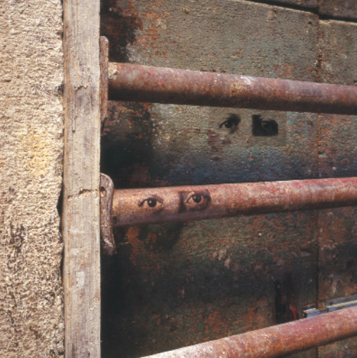 Ahora bien, como hemos señalado, Graciela Sacco ha evitado referir situaciones particulares. A diferencia del uso de fotografías provisto por Nirma Zárate en la serie señalada, al reordenar la información visual y documental para ofrecer un testimonio específico y contextual al observador, o los artistas argentinos en la muestra de Tucumán Arde, que expusieron las condiciones de miseria que vivía la población tucumana, las variaciones de Bocanada animan un uso no documental de la imagen fotográfica. Más bien, como lo hace Beatriz González, Sacco apela a imágenes que, al sustraerse de su contexto de circulación original, se tornan genéricas y se convierten en arquetipos o en imágenes con un valor atemporal y universal que cobra sentido de acuerdo con el nuevo contexto en el que se sitúan. Esto puede comprobarse en varias obras posteriores, como en Entre nosotros (2001/2014), de la serie Esperando a los bárbaros (1995/2014), donde tomó una sucesión de imágenes de ojos, dispuestos siempre en un reducido marco rectangular, y los ubicó, desde 2001, en muros y paredes de diversos lugares con valor histórico en el mundo. Si bien cada imagen es única e irrepetible, la doble descontextualización que procura Sacco —supresión del fondo y eliminación del rostro— acrecienta la imposibilidad de darle identidad o singularidad a esas imágenes. En consecuencia, aquella universalidad y atemporalidad que les caracteriza, posibilita que, de acuerdo con el lugar y el momento de la intervención, se active la imaginación y la memoria de los transeúntes, quienes terminan por otorgarles un nuevo sentido a las imágenes. La tranquilidad de los caminantes se ve perturbada por las miradas fantasmales de aquellos que parecen asomar sobre muros y paredes agrietados, y a cada quien recuerdan alguna coyuntura, conflicto o guerra que, en distintos niveles, ha vivido la humanidad desde hace siglos.