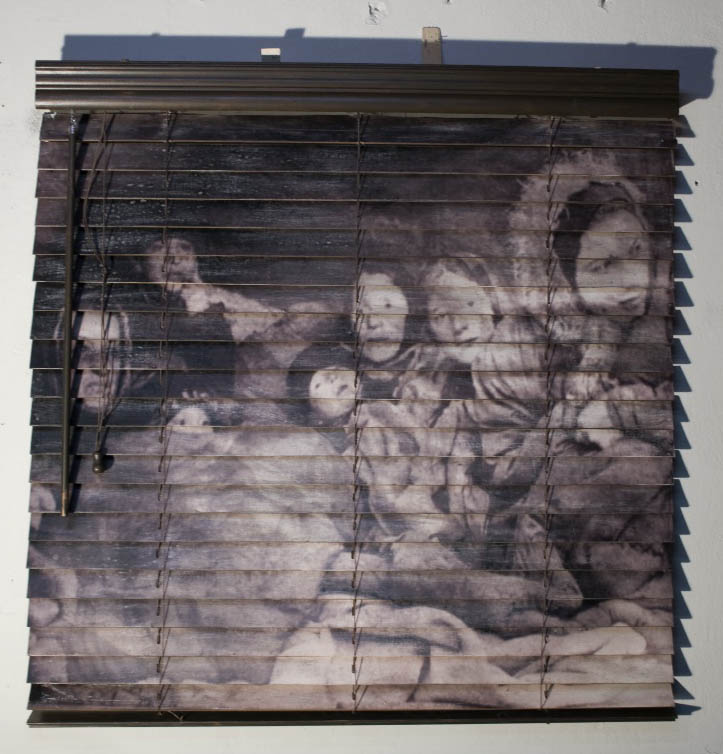 Incrustación fotográfica sobre fragmentos de madera