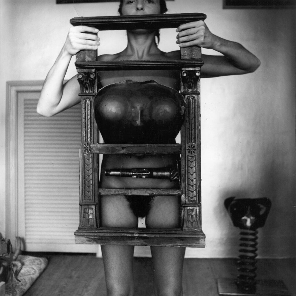 En 1983 la artista Liliana Maresca se hizo tomar por su amigo Marcos López una serie de fotografías en blanco y negro con objetos realizados un año antes por ella misma a partir del ensamblado de varias piezas. El conjunto de fotografías retrata a Maresca desnuda, con los objetos delante o sobre su cuerpo, en una serie de inquietantes poses en las que el objeto opera como una suerte de prótesis que oscila entre la corrección normalizadora del cuerpo y su mutación poshumana. En un sentido, es posible pensar estos objetos de Maresca como tecnologías de producción sexopolítica del cuerpo de la mujer, dispositivos de disciplinamiento (de sexuación y generización del cuerpo), corsés o tecnologías prostéticas, destinados a la corrección y normalización del cuerpo. Pero, al mismo tiempo, parecen operar como dispositivos que incitan a perder o transformar las formas de lo humano y nos interpelan con los perturbadores signos de un devenir poshumano de los cuerpos y la sexualidad.