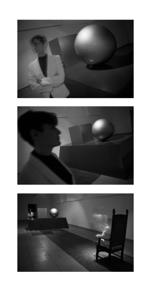 Para esta exhibición Maresca compuso Ecuación El Dorado, una metafórica instalación en la que representó, a través de cuerpos geométricos, la alta proporción de sangre de las poblaciones originarias que costó el saqueo del oro transferido a Europa. En las fotografías de Miranda la artista surge desplazándose de un punto a otro en tomas superpuestas que vuelven inasible su figura. No menos sugerente es la imagen que muestra su perfil en contraluz, recortándose oscuro sobre la pirámide truncada, la esfera y el cubo que integraron su obra, poco después incluida por Res en su azarosa composición para el primer políptico de la serie Pardiez.