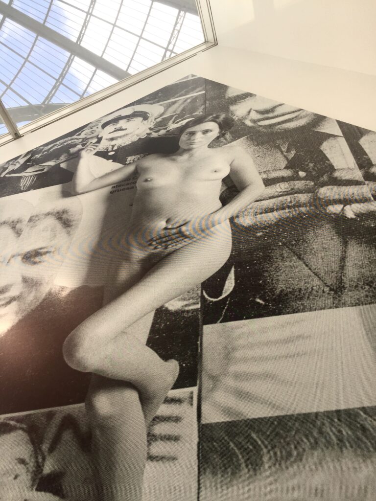 De estas declaraciones se desprende que aún el hecho de dejar su desnudo fotográfico en el exterior de la instalación propiamente dicha, lo hace parte integrante de la obra y, en ese contexto, así funcionaron también las fotoperformances que se encuentran en las piezas gráficas. Su posición, aparentemente marginal, es estratégica: indica el involucramiento de la artista en la lógica de lo que denuncia. Sus desnudos son a un tiempo prostibularios, insertos en el flujo de las debilidades de una sociedad y, por lo tanto, también vulnerables; pero, por otro lado, íntegros: se colocan literalmente por encima, a cierta distancia y a la vez en medio –no olvidemos el trasfondo de imágenes que ambienta estas fotografías– para poder tomar conciencia, señalar y llamar a la reflexión acerca de los estigmas sociales y políticos padecidos.