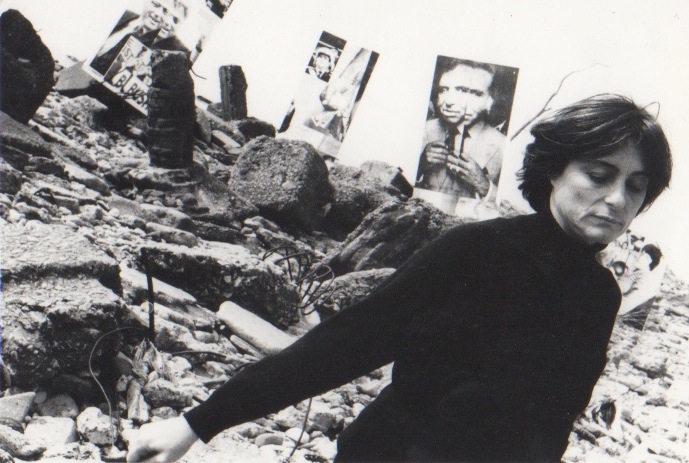 Luego de la impactante Recolecta de 1990 donde expuso y sublimó el problema social de los cartoneros– (5), los registros fotográficos de las grandes instalaciones que Maresca presentó a lo largo de 1991 estuvieron a cargo de Adriana Miranda. Algunas tomas incluyen la imagen de su creadora como las de Wotan-Vulcano, sobrecogedora pieza dedicada a la Guerra del Golfo. Allí la artista surge como un fantasma en medio de las carcasas de los cajones funerarios. Su figura se transluce etérea y se inquieta en un leve movimiento, como si replicara el temblor de la llama de la lámpara de petróleo que representó la causa del conflicto bélico al que la obra se refiere, pero también es la única y débil luz que se abre paso frente al horror de la muerte. En esta composición fotográfica la figura de Maresca casi se funde con aquella lámpara votiva. Y se justifica, ya que fue ella la que aportó lucidez con su trabajo al desatino de los poderes descontrolados.