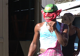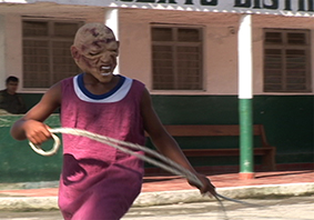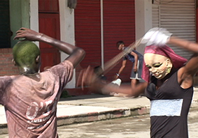 Mapa Teatro asiste con asombro a las celebraciones decembrinas de Los Santos inocentes, en el pacífico colombiano: cada año, el 28 de diciembre, hombres enmascarados, vistiendo ropa y accesorios de mujer, corren por las calles repartiendo latigazos a quienes, sin máscara, encuentran a su paso. Hombres, mujeres, adultos y niños, en su mayoría afrodescendientes, intentan escapar o evadir los latigazos, pero, extrañamente, muchos de ellxs se tiran al suelo para recibirlos. Se trata de una fiesta y, sin embargo, a los ojos de un testigo, bien podría tratarse de otra cosa: ¿una transgresión, una catarsis colectiva, una pesadilla o una masacre paramilitar? El acontecimiento real toma la forma de una ficción que desenmascara la teatralización de los dispositivos de violencia en Colombia. A partir de esta experiencia en la que la fiesta colectiva funciona a su vez como un contra-dispositivo de resistencia a la violencia, Mapa Teatro presenta aquí una nueva variación de Los Santos Inocentes a la manera de un archivo-vivo.