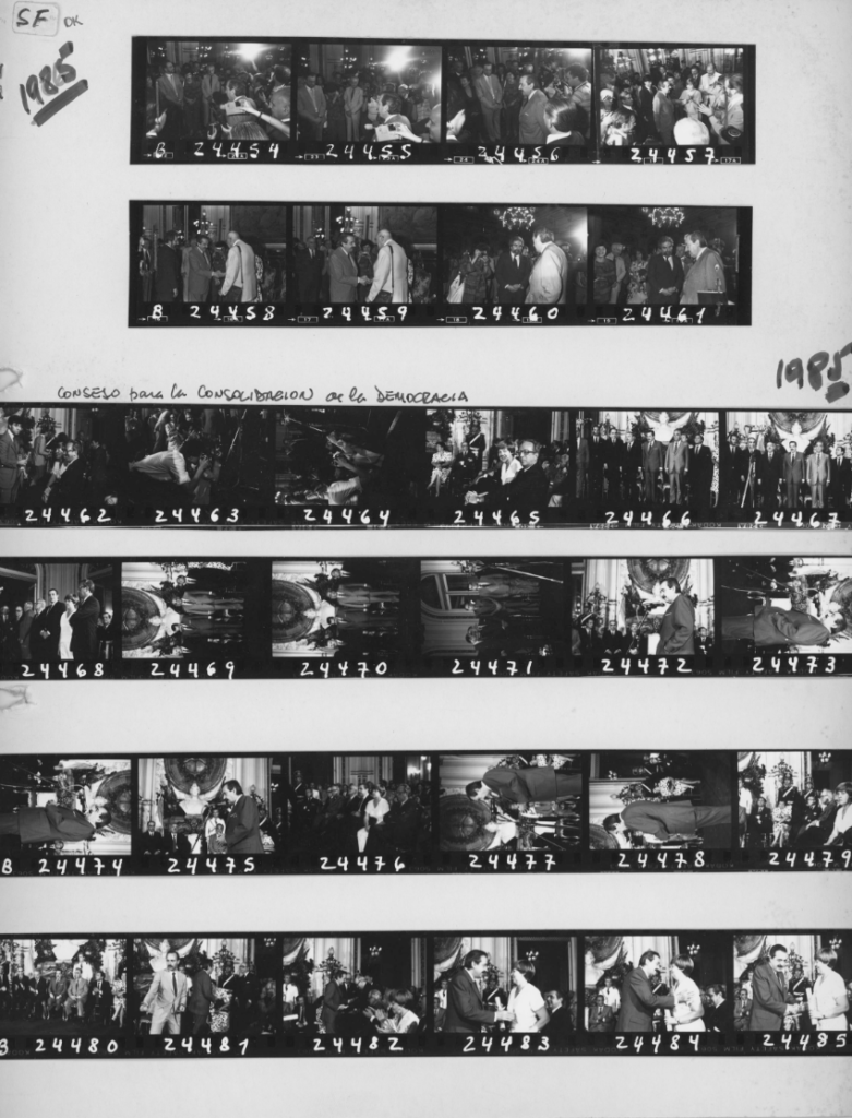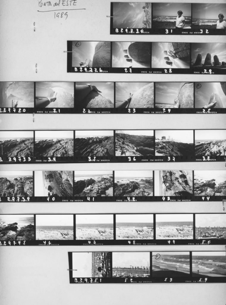 Plancha de contactos sobre papel con inscripciones de la artista