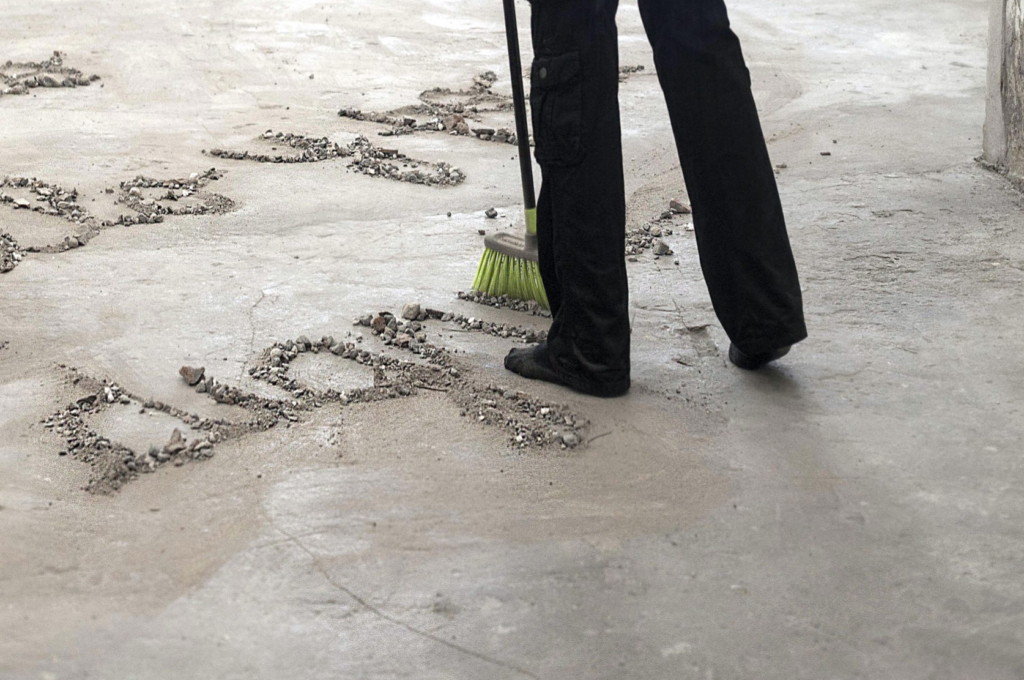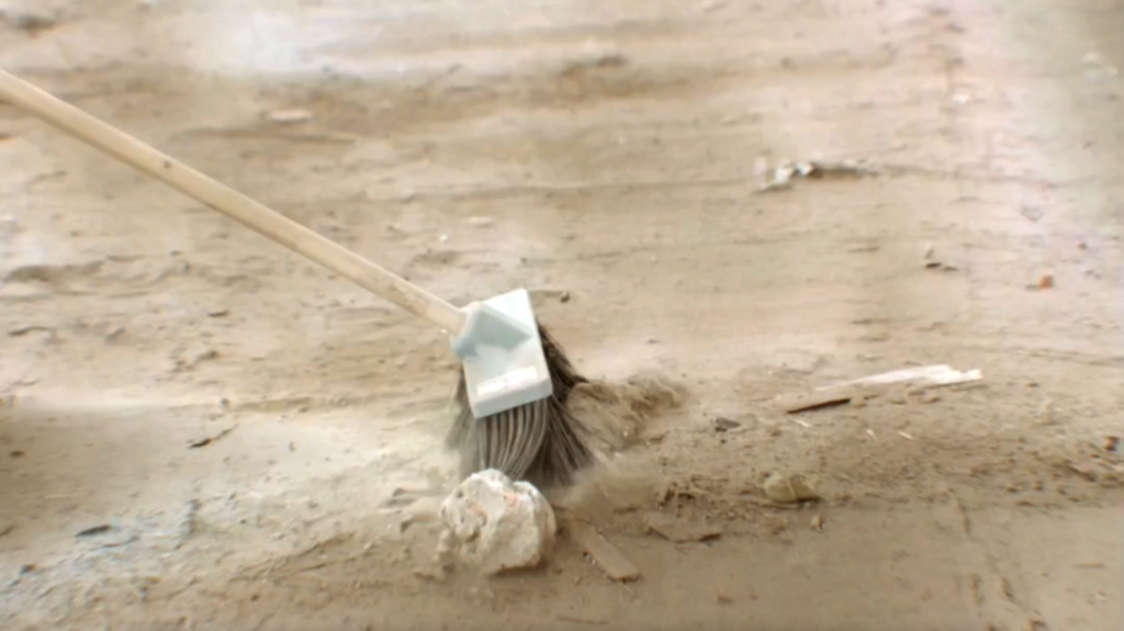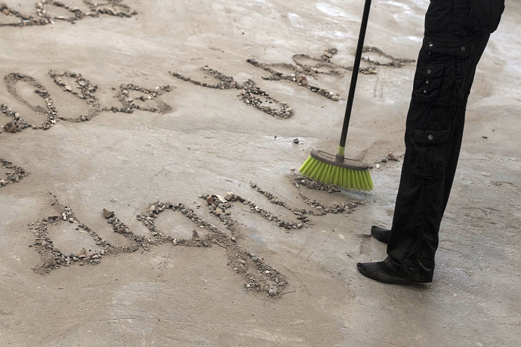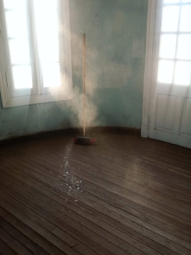 Set composed by 4 photographs & object (broom from the performance)