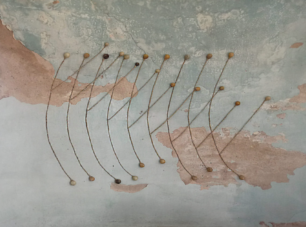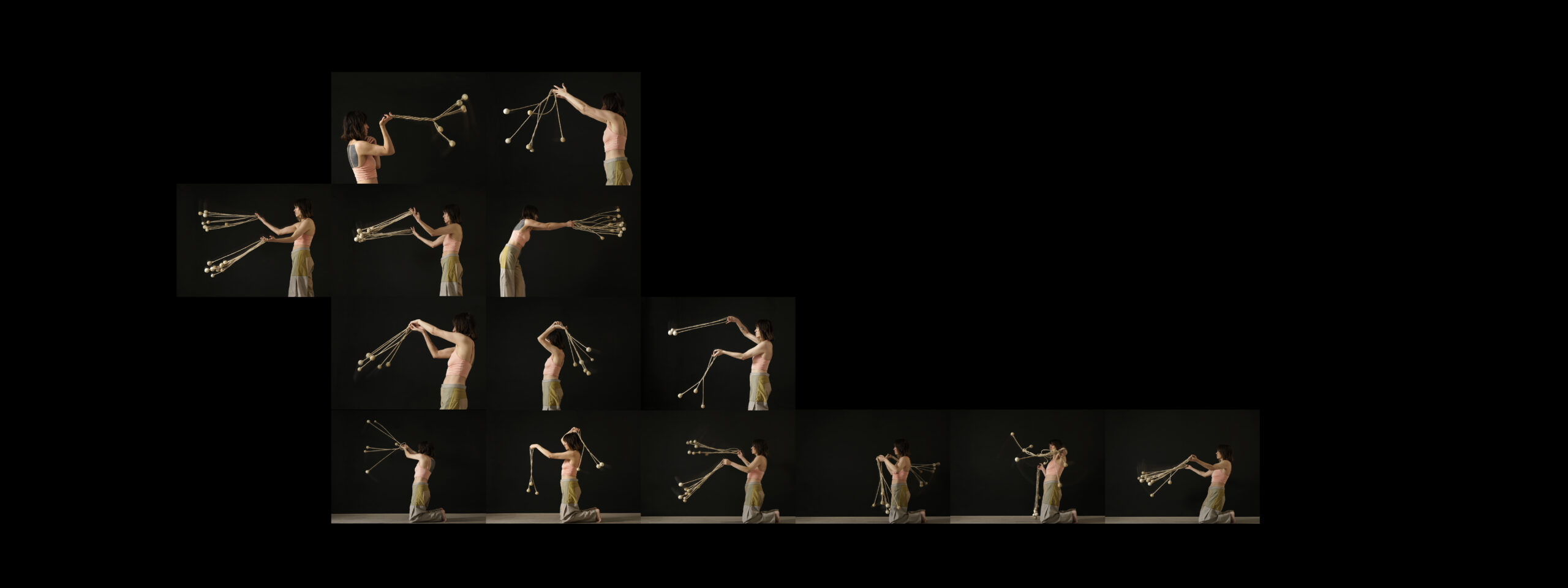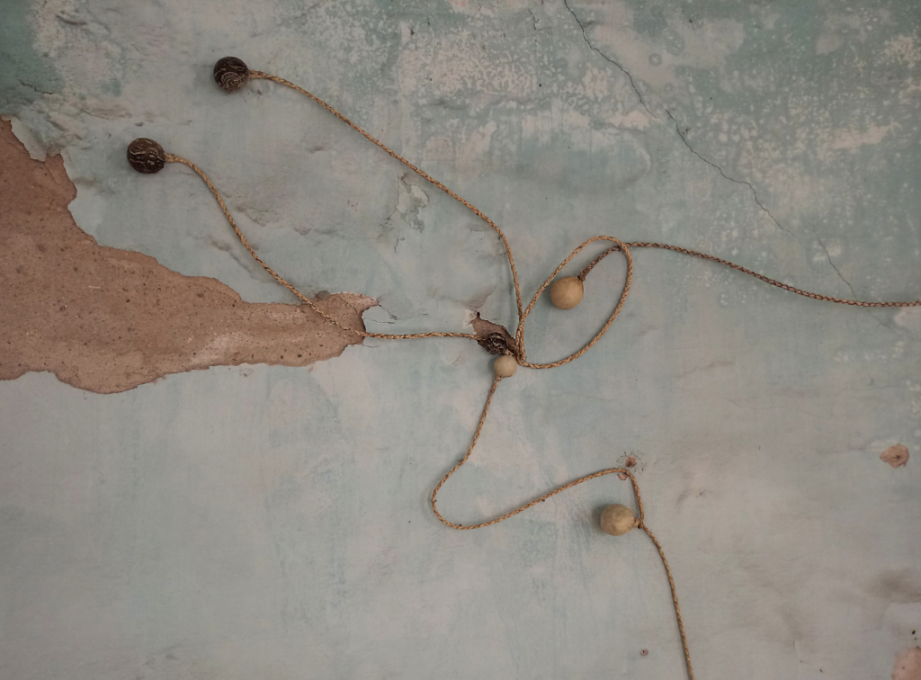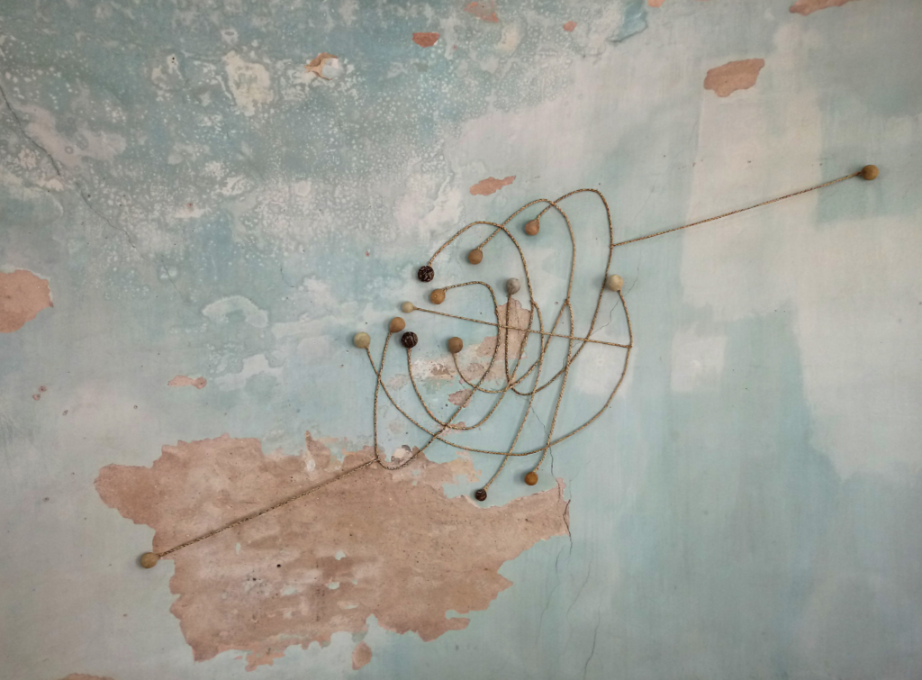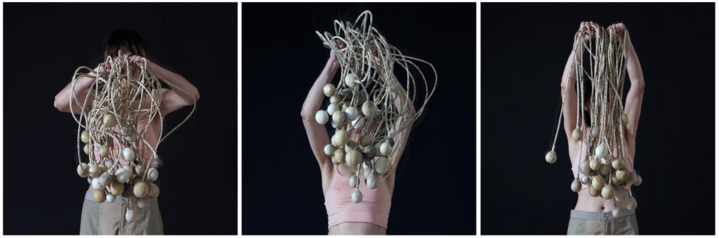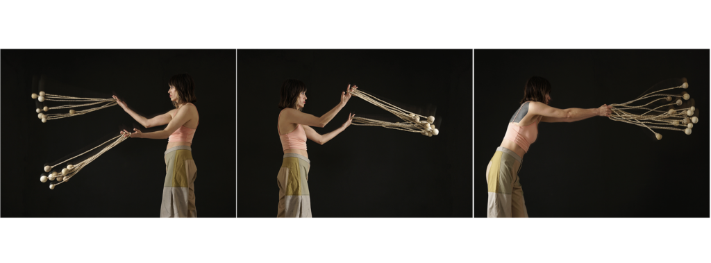 Estas esculturas son a la vez cuerpos y nudos en tensión. Formalizan a la vez el enredo de la boleadora al tropezar al animal del enemigo, tanto como la fuerza de control del jinete sobre su montura. Son, al mismo tiempo, objetos-cuerpo, dotados de simetría, y testigos de tortura. Péndulos lo mismo que caretas; prótesis y monstruos; maquinarias y fantasmas. Vástagos de un encierro que va más allá de la pandemia pues es continente e historia. Estos son nuestros nudos, y nuestro enredo, y una batalla eternizada.