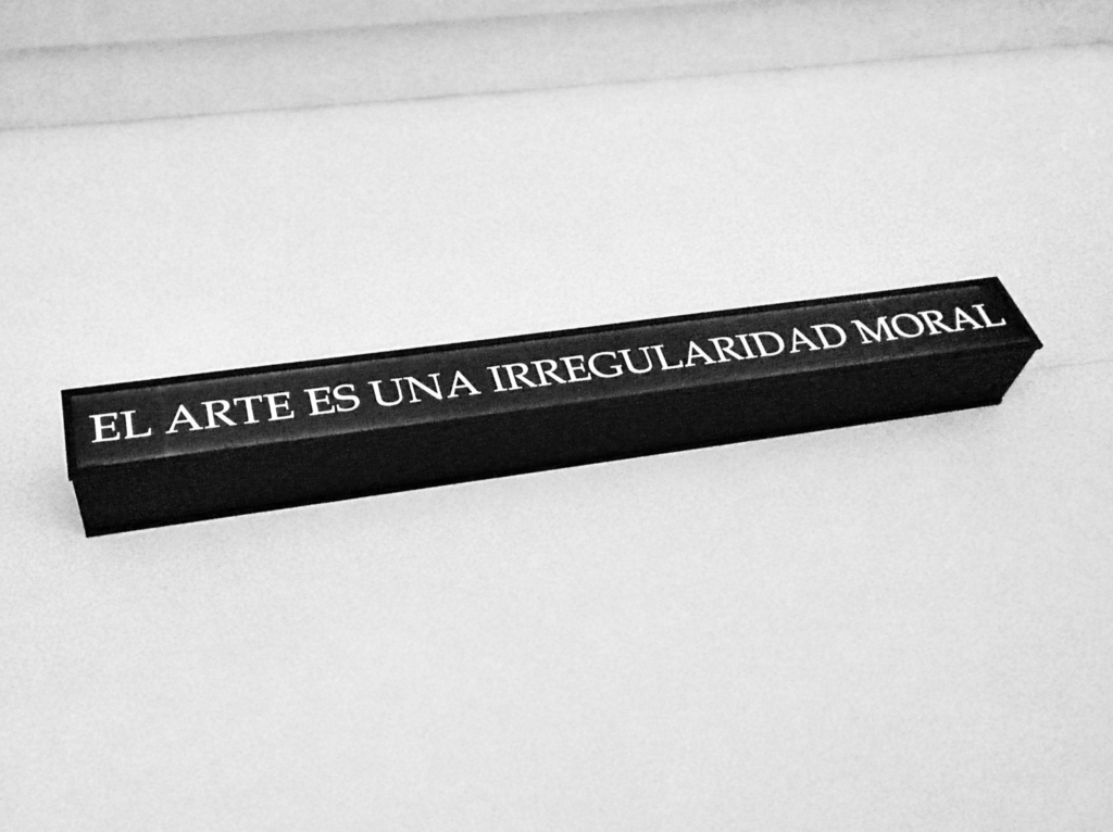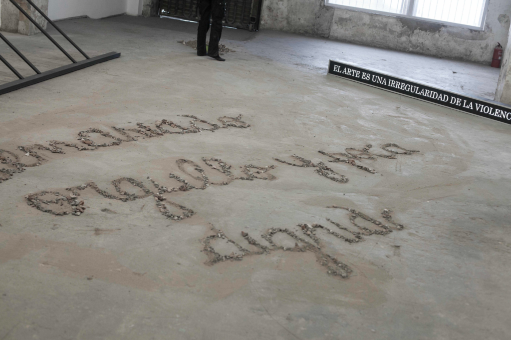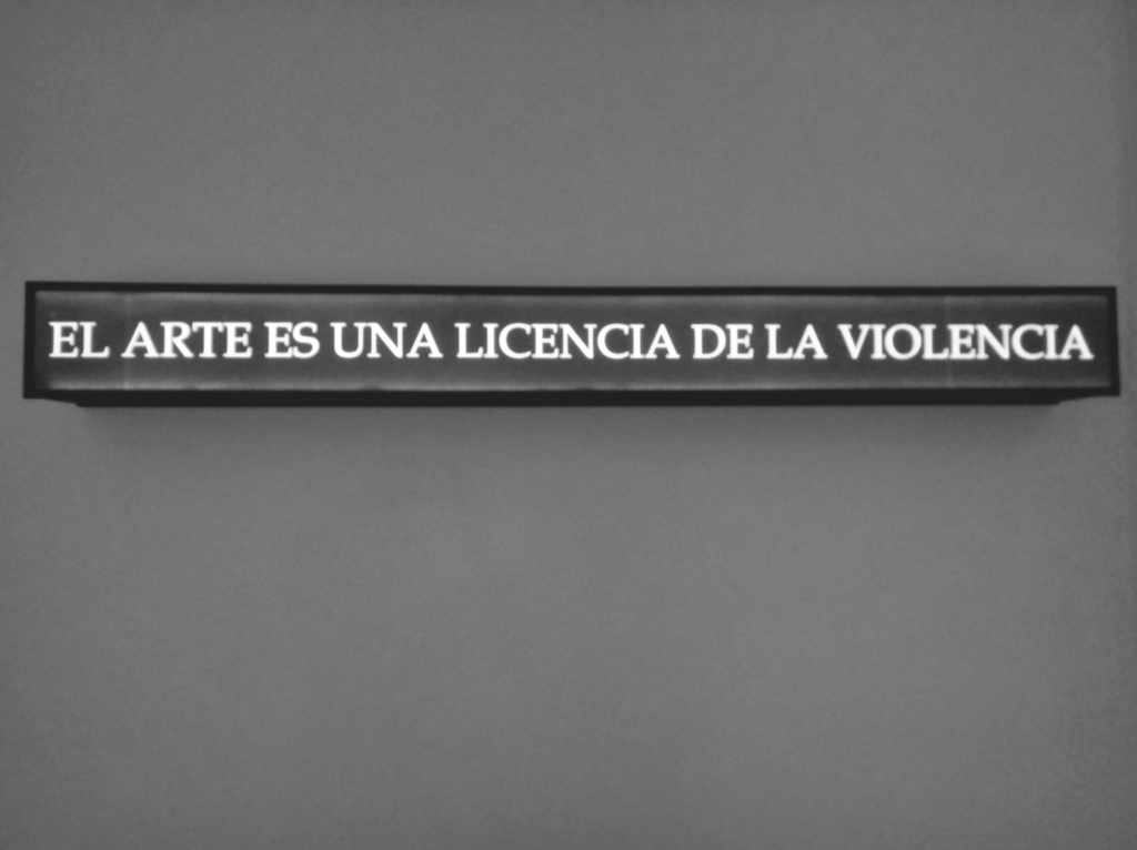 Una serie de afirmaciones y definiciones de arte que resultan de un ejercicio de conceptualización. Ese ejercicio involucra – de manera crítica y críptica- las relaciones posibles entre arte y violencia.