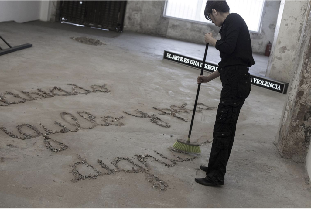 Artista. Su práctica oscila entre la performance, el arte público, el dibujo, la escritura y los sucesos escultóricos.