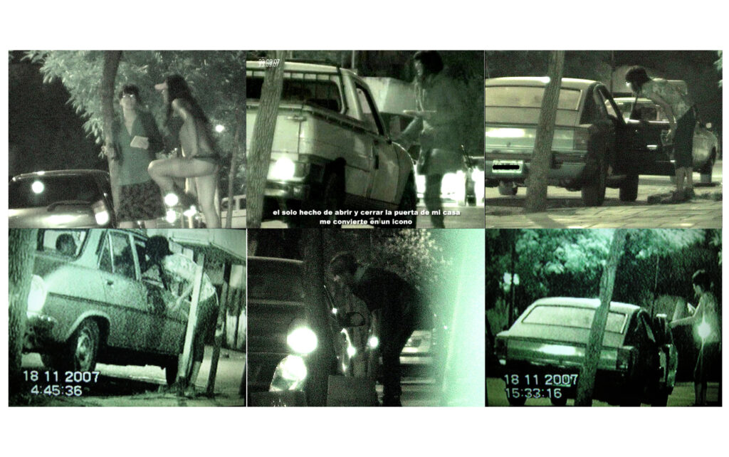 Abrir la puerta de casa y convertirme en un ícono en medio de una red intercorpórea de secuencias fijas y comportamientos previsibles. Salir de casa, casi a cualquier hora del día y que los autos paren a ofrecerte dinero es cosa de todos los días. Es dentro de esta generalización continua del campo social donde comenzó Negociación. Este proyecto no tiene un proceso lineal sino que es campo de experimentación. Mi cuerpo es un operador de quiebre en una cadena de conductas: durante 3 años, regularmente, en horas de la noche, salí a hacer mi “performance” : Permanezco, espero, miro y detengo a los automovilistas que circulan por la zona roja, mi cuerpo habita en esas miradas que se deslizan …cuando me asomo por la ventanilla y establezco mi estado de noprostitución, mi negociación comienza y supera al ícono como paquete significante, en ese mismo instante estoy en condición de manejar la situación: yo sé algo de ese otro que tengo al frente y el otro no sabe nada de mí.