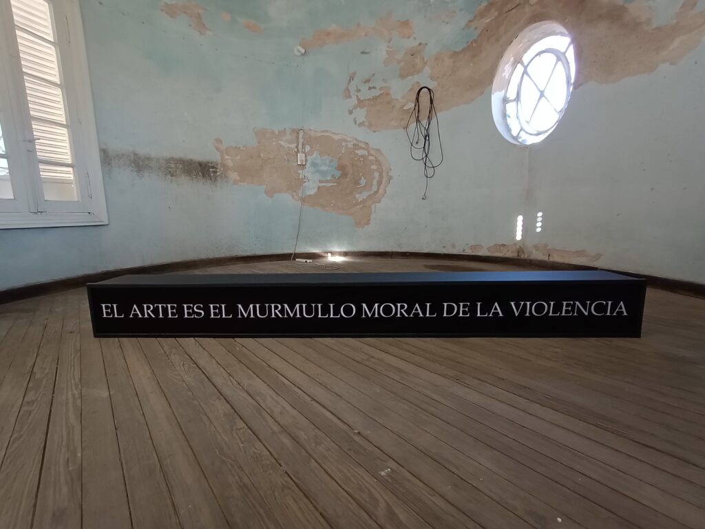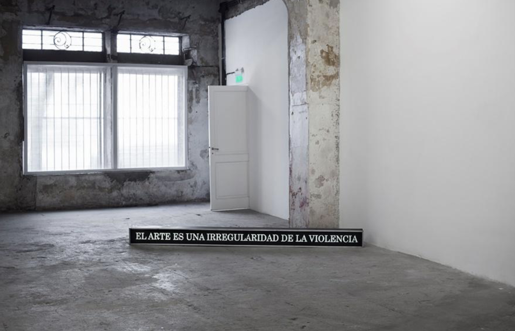 La palabras cartelizadas y lumínicas funcionan como subversiones al lenguaje y resistencia a los discursos políticos, antipoéticos y polarizados de actores e instituciones del sistema del arte.