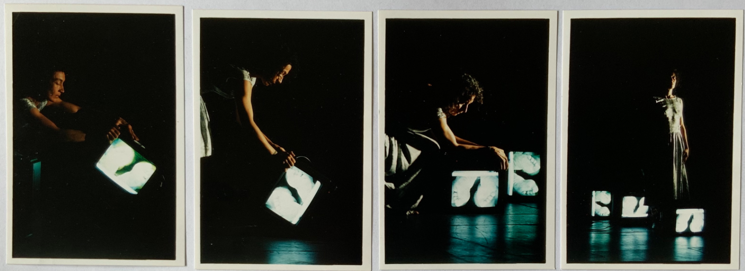 El trabajo se completa a través del propio cuerpo de Hincapié. Tal como describe la curadora Andrea Giunta: “El video y las fotografías de la performance Intempestivas nos muestran a María Teresa Hincapié en una forma de ceremonia ritual extrema que convoca referencias a la violencia en Colombia en las que se cruzan citas míticas, religiosas. El guión del video es de José Alejandro Restrepo, pero María Teresa inscribe en la performance una dimensión sacrificial irreemplazable. La redefinición del cuerpo que se pliega y activa desde la forma involucra una performance que explora los límites del espacio. Un espacio en el que ella se desplaza entre televisores, canta, extiende su cuerpo al ritmo del rezo bajo el foco. Todo sucede en un escenario.” (Andrea Giunta, Notas de la exposición Pensar todo de nuevo, 2020)