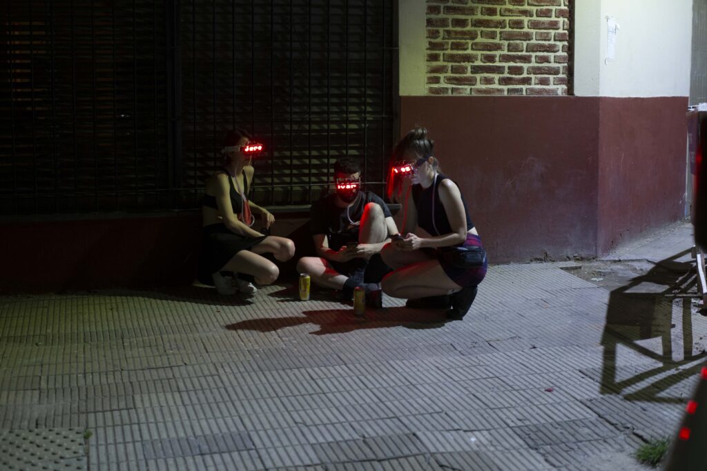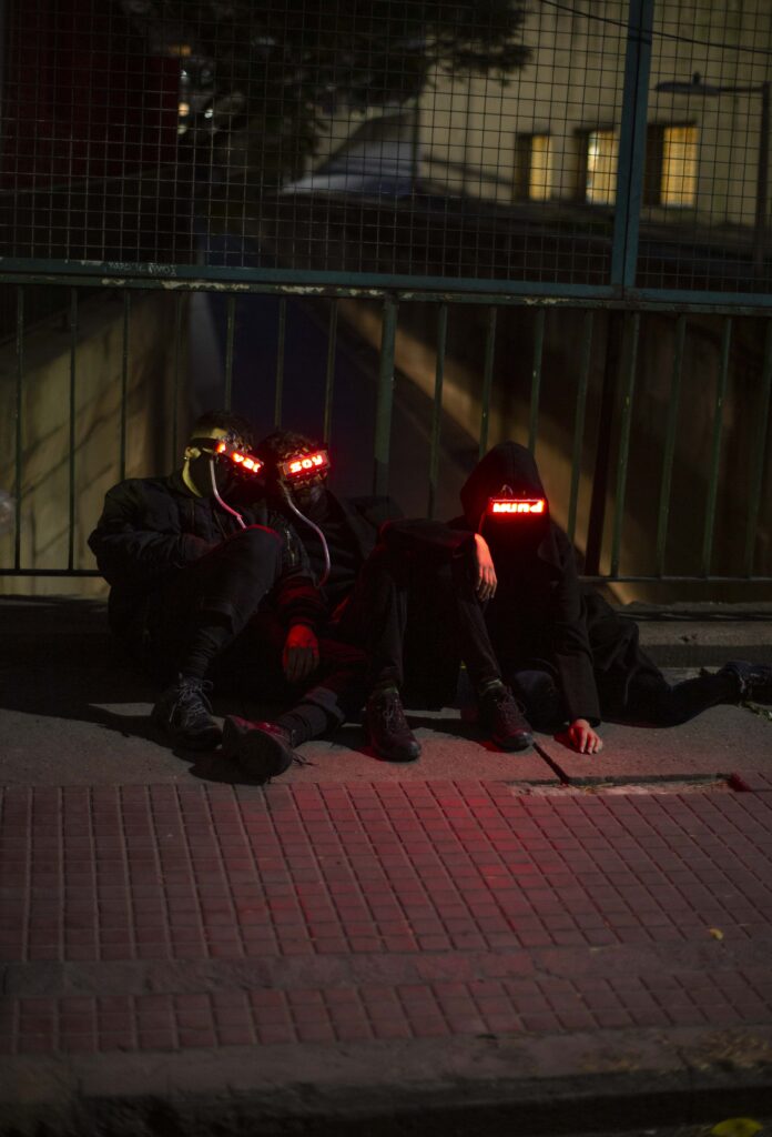 La acción consiste en un grupo de jóvenes, quienes usan gafas de matriz led, donde se reproducen continuamente titulares de noticias extraídas de internet pertenecientes a diversos medios y consumidas por múltiples públicos. Este grupo opera como una pandilla deambulante que interviene la ciudad.