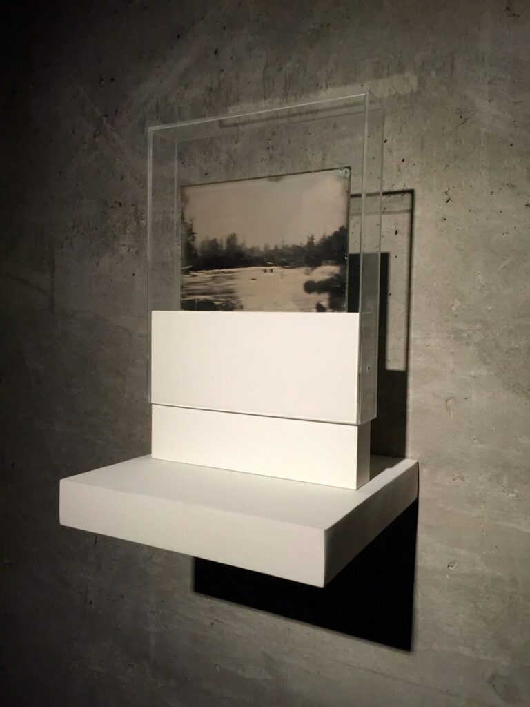 Colodión húmedo sobre placa de vidrio en estructura de madera y acrílico.