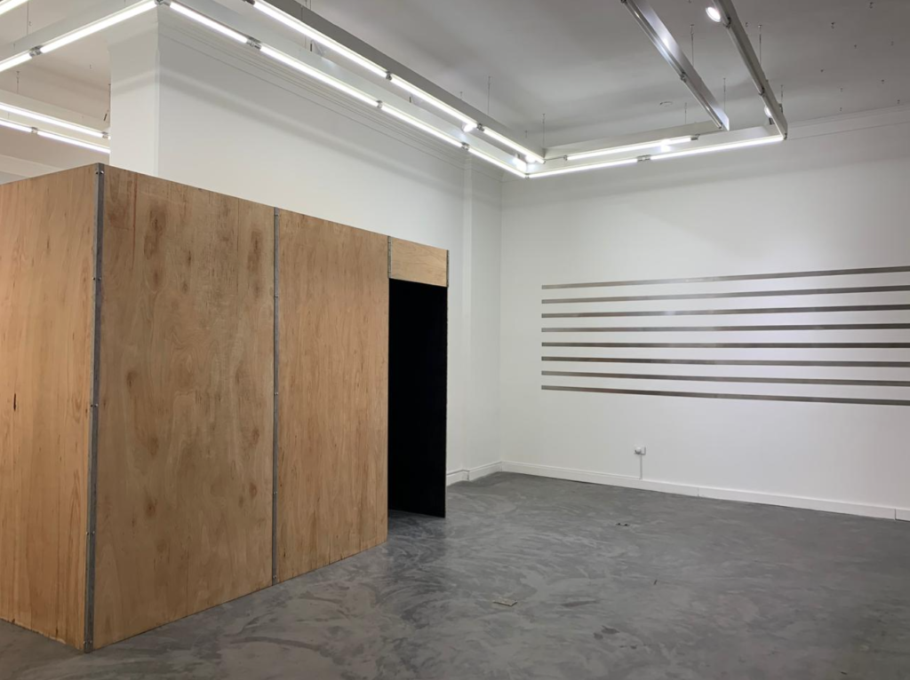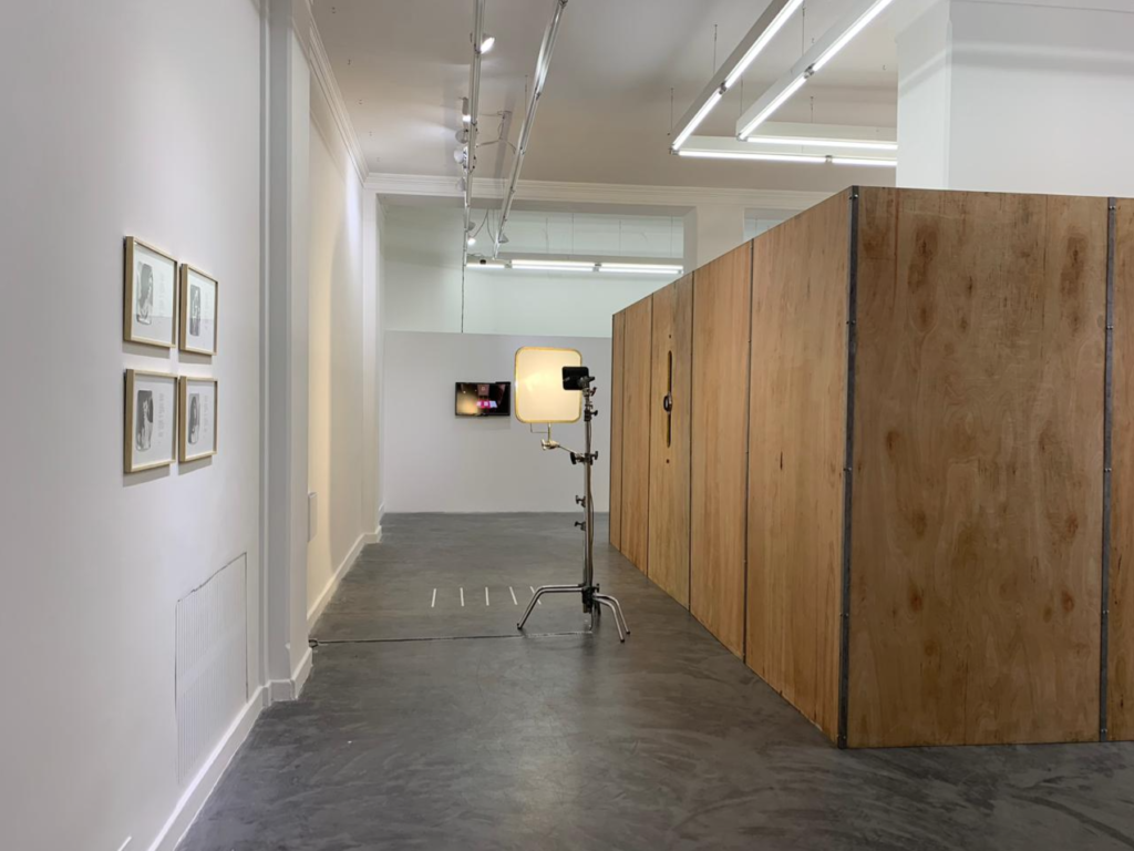La propuesta consiste en una instalación interactiva de gran formato de una cámara oscura donde el proceso de creación de una imagen es llevado a cabo “en tiempo real” por la propia artista en interacción con los visitantes. La acción propone que los participantes se enfrenten al mecanismo, lo recorran y puedan atravesarlo, proyectando(se) en el espacio de la imagen y vivir una experiencia social de cualidades escultóricas. La cámara deviene entonces un contrato abierto, simultáneamente tácito y explícito, que los visitantes firman al colaborar. El resultado es una obra de arte, un retrato fotográfico, una impresión del propio pasaje de cada persona que visita la obra o la feria “en tiempo real”. Junto a la instalación, la propuesta se enriquece con una creciente colección de las imágenes resultantes, mientras que el otro lado presenta un monitor que sigue en tiempo real todo lo que sucede dentro del amplio recinto.
