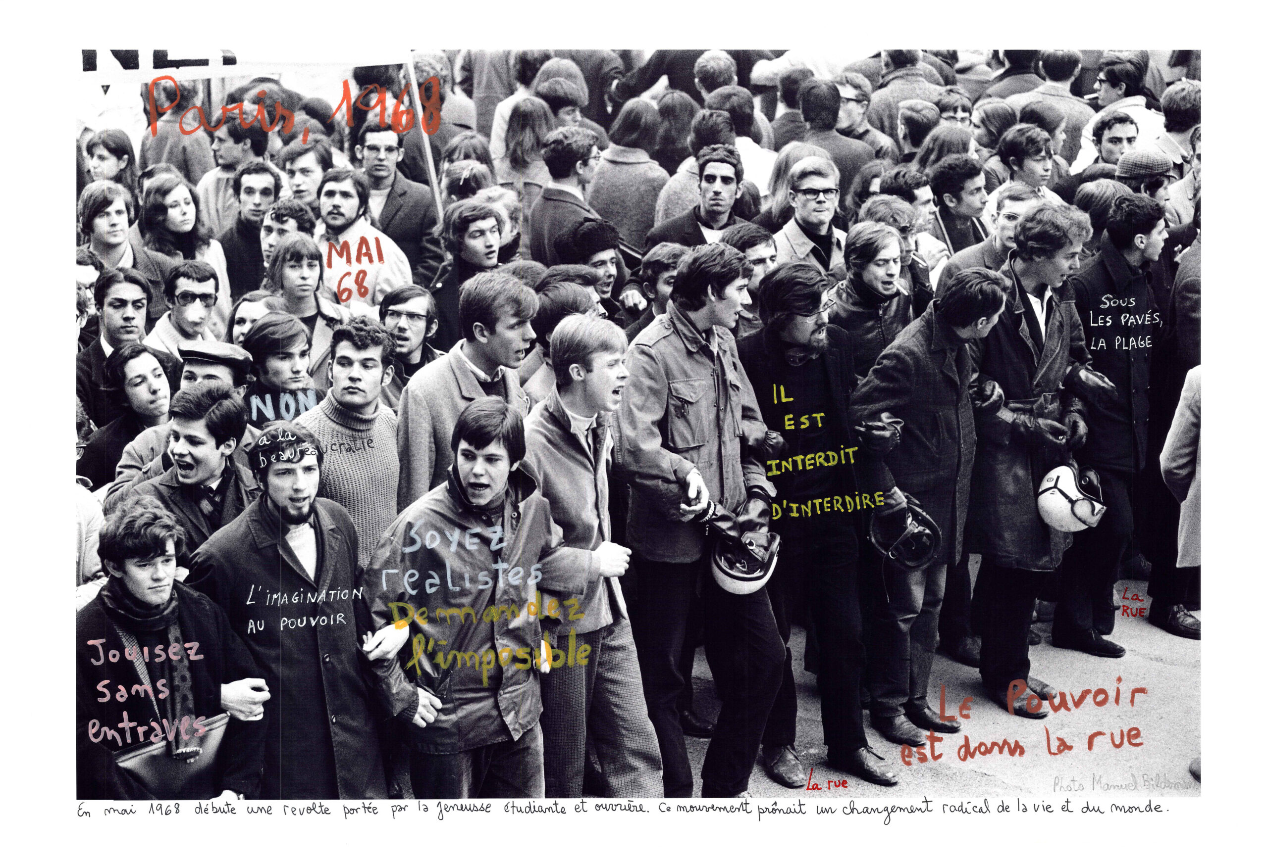 En una pancarta de la manifestación del Mayo Francés de 1968 se muestra, el grito de “L’imagination au pouvoir”