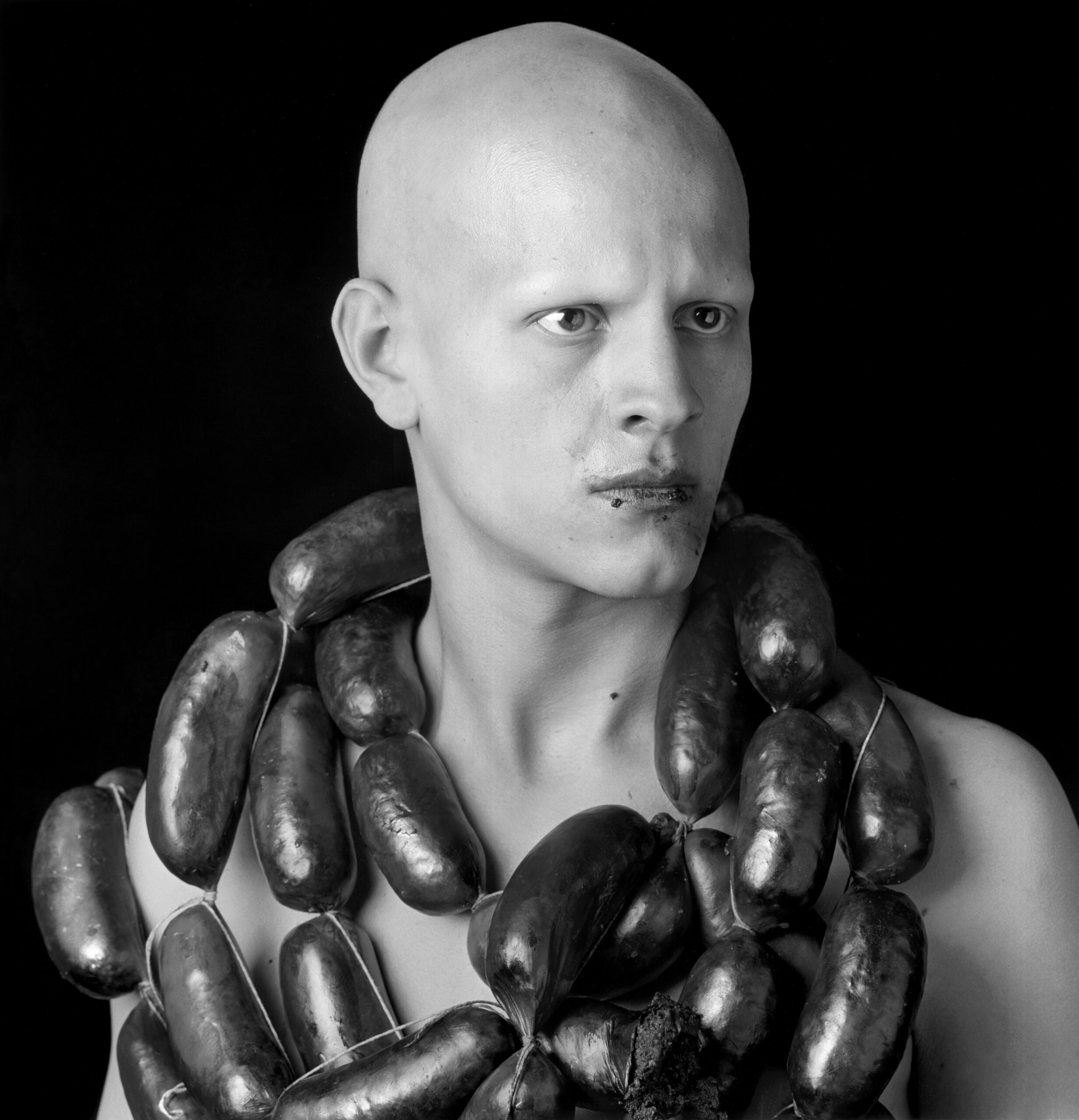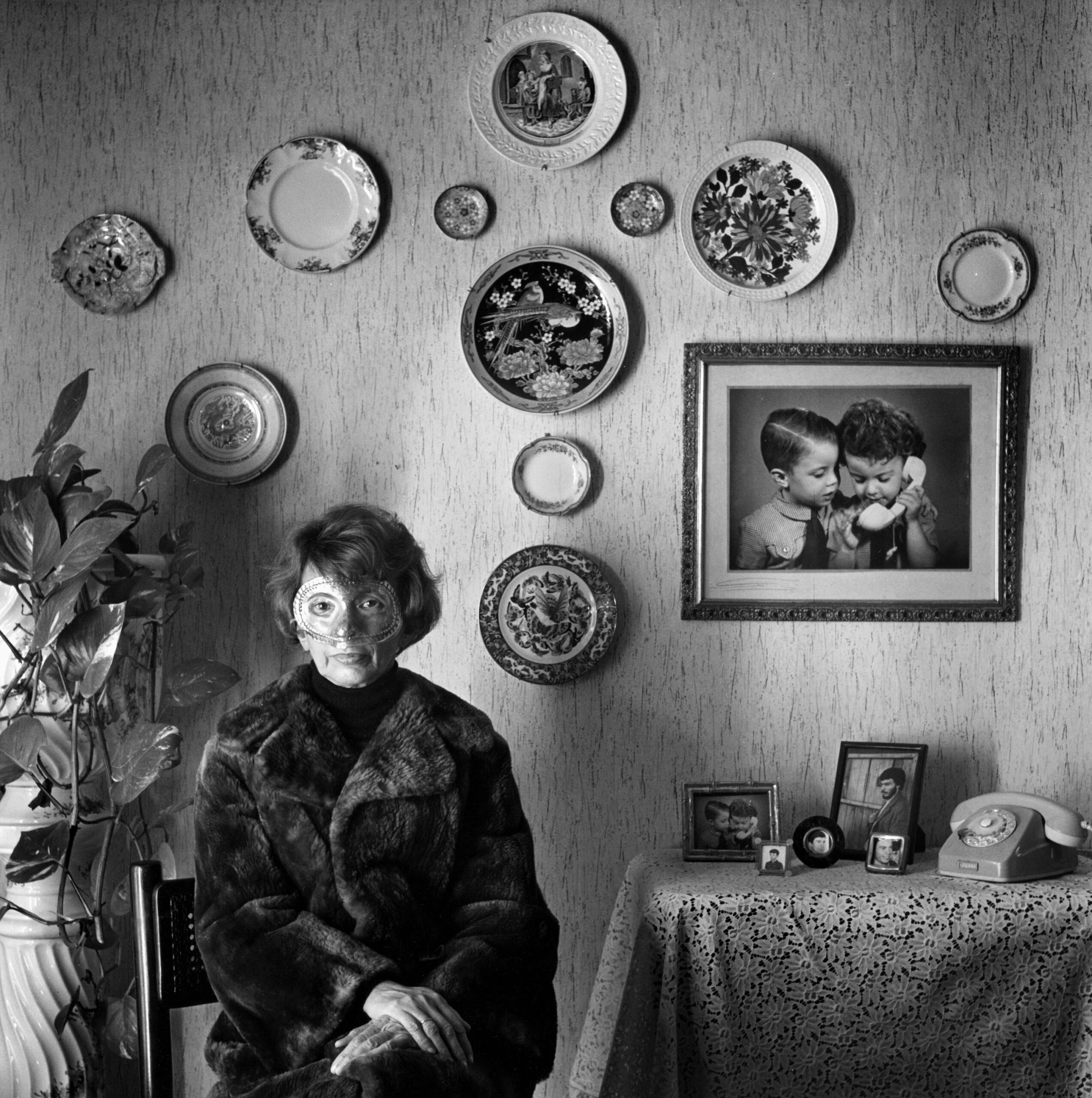 La vocación fotográfica de Marcos López surge a mediados de los ‘70, en el contexto de una vida provinciana, entre amigos, la familia, las calles grises de su ciudad santafesina, los clubes de barrio y los adornos de la casa, que luego han de convertirse en fuente de inspiración. Ese es el mundo que evocan las fotografías en blanco y negro realizadas entre 1982 y 1992, desde el distanciamiento provisto no tanto por el viaje a la capital como por la conciencia artística que éste implicaba. Dos de las imágenes más tempranas son “Autorretrato” y “Mi mamá” (1984). En ellas, López resume los valores que rigen la vida de una familia de clase media en la provincia, una mezcla de homenaje y de guiño humorístico. Es evidente la perspectiva kitsch de la mirada, pero también el tierno regodeo ante la acumulación de adornos y de símbolos que expresan el decoro y la moral cristiana del hogar. Cómplice de esa singular convivencia de humor y deferencia, la madre posa con absoluta seriedad frente al mundo de su gobierno, como ignorando la máscara que lleva puesta. “Nunca me preocupé por saber qué era el realismo mágico – dirá más tarde Marcos López – pero tal vez sea eso: cuando todas las partes de una situación son conscientes de participar de un acto absurdo teniendo respeto por no delatarlo”.