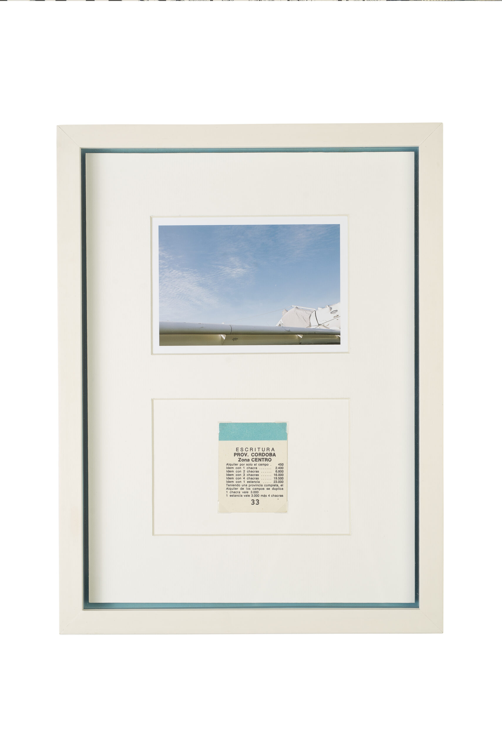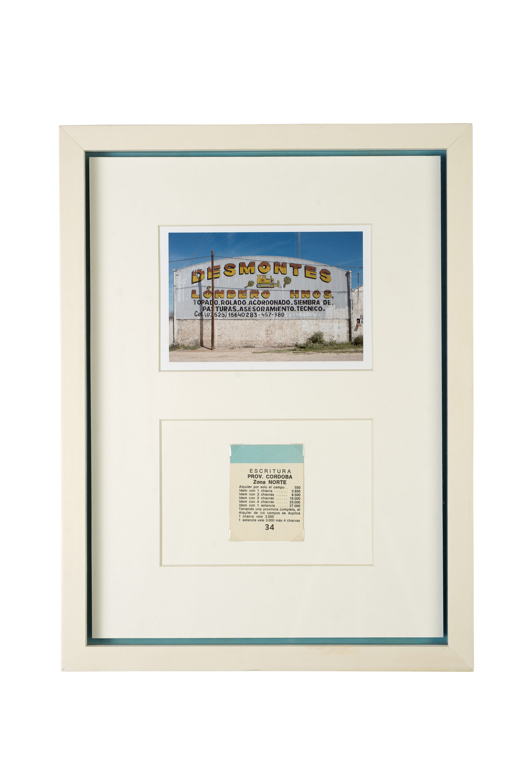 Interior es el resultado de una investigación desarrollada por Livio Giordano a lo largo de cinco años que busca dar cuenta de las transformaciones de los espacios rurales, anclados éstos en un imaginario urbano desfasado historicamente. La muestra site-specific exhibe dispositivos fotográficos de estilo documental orquestados en función de El Estanciero y la milanesa de soja como íconos. Imagen, texto y juego invitan a vivir una experiencia metafórica que da cuenta de las dinámicas propias del campo y el agronegocio. Un extensa barrera de cemento impide ver a los administradores las consecuencias de sus acciones y un nuevo estilo de vida se impone silenciosamente sobre otro.