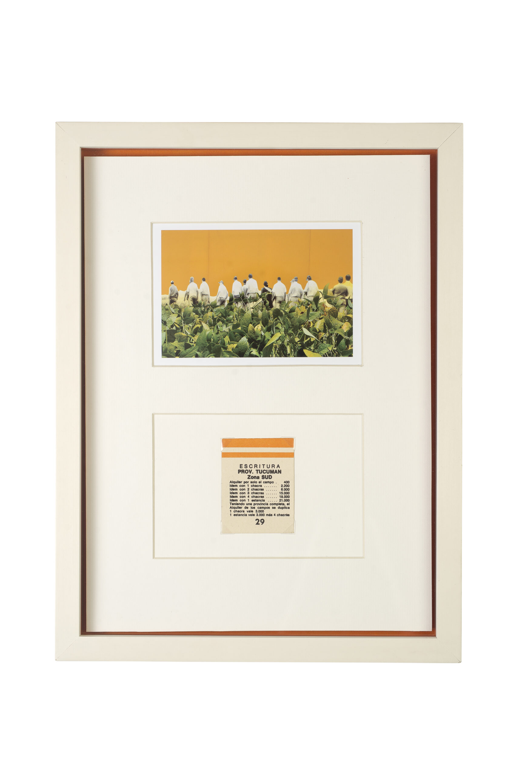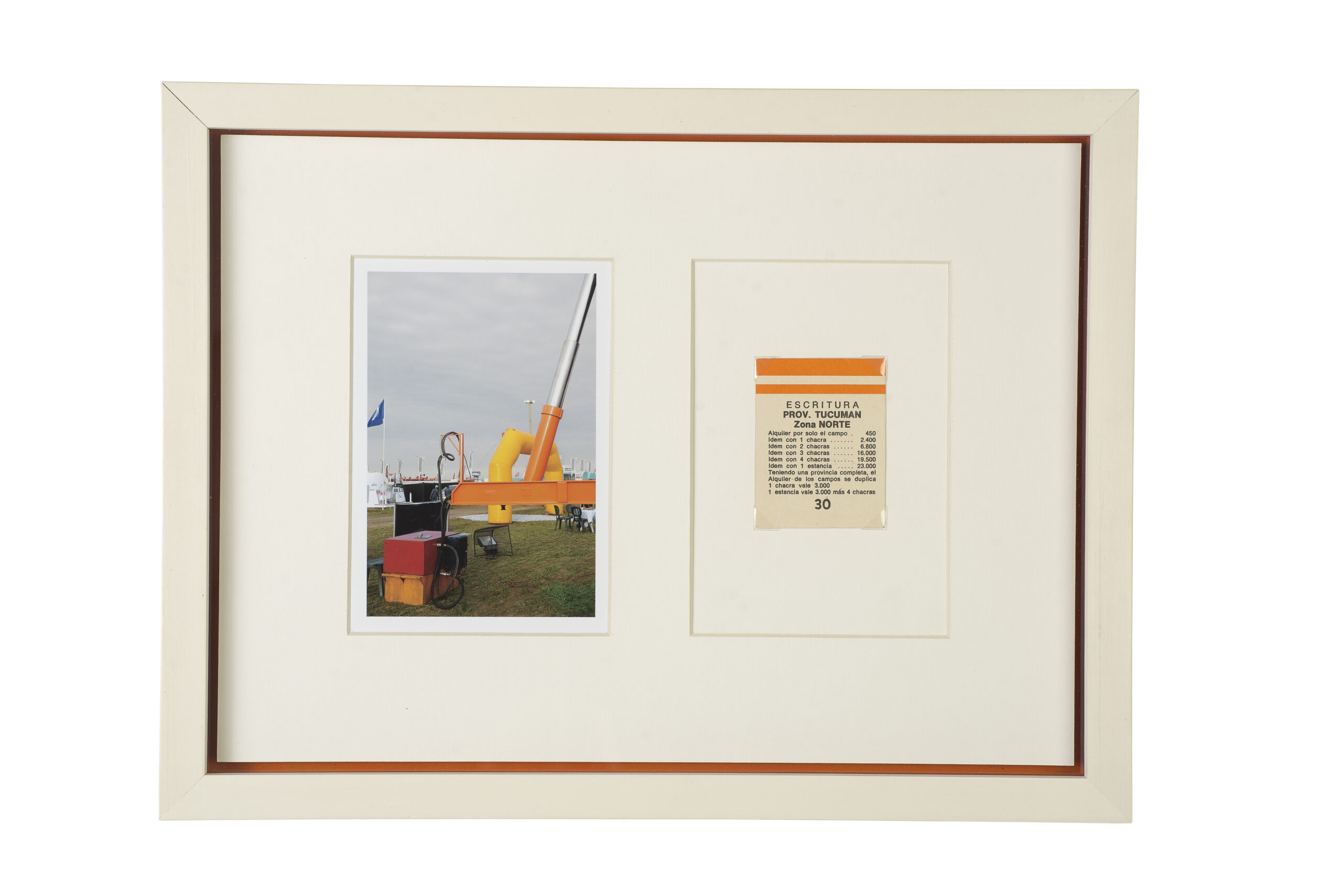 exhibe artefactos visuales que focalizan en aspectos de la dinámica actual de la industria agrícola en Sudamérica.