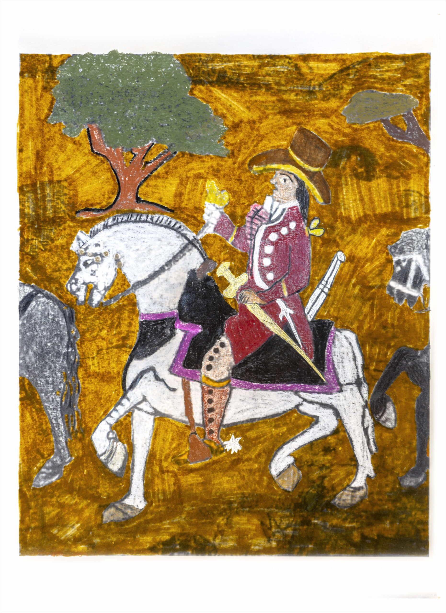 Impresión inkjet, crayón, acuarela y tinta sobre papel de algodón
