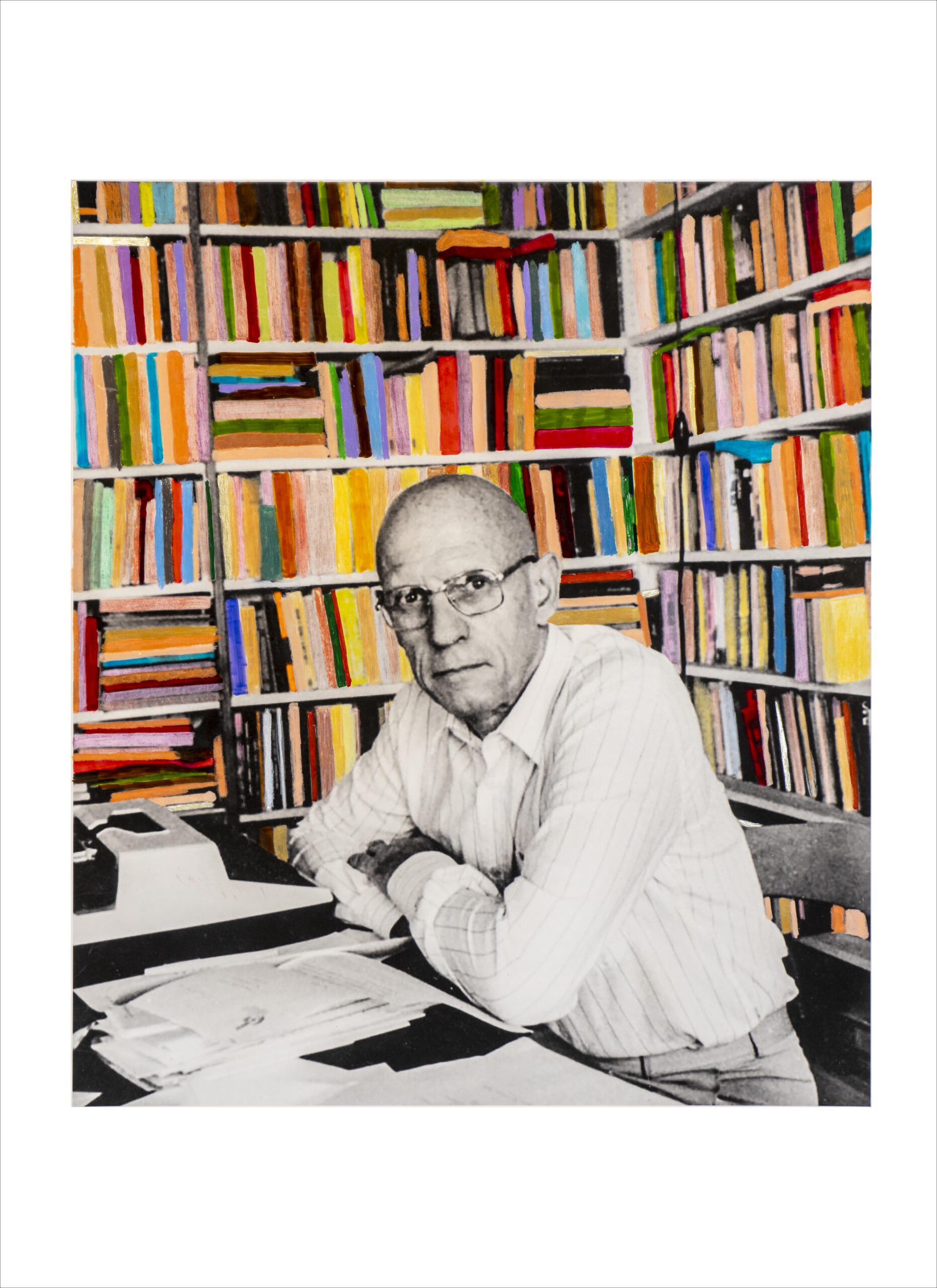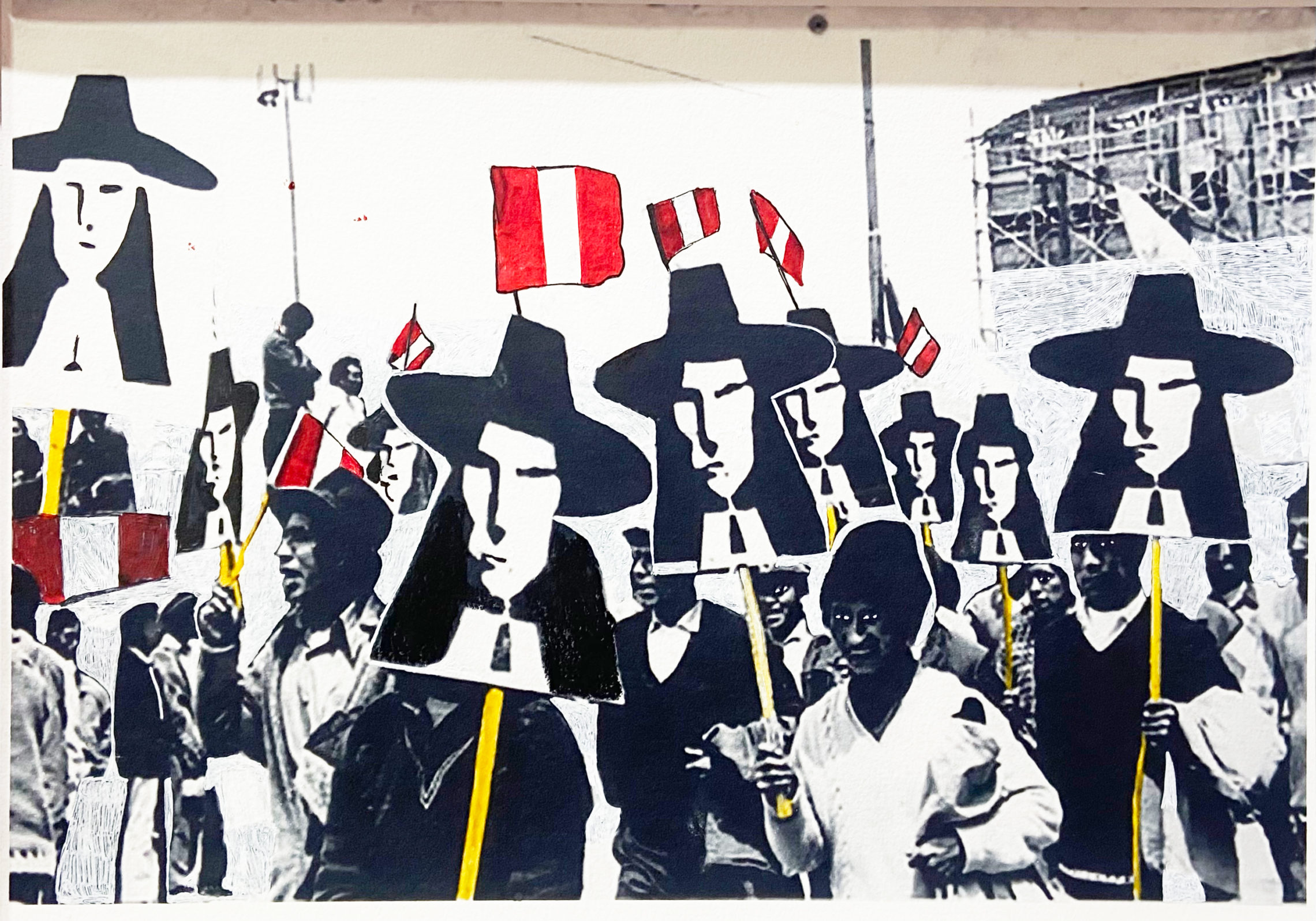 Fotografía de archivo blanco y negro intervenida a mano por