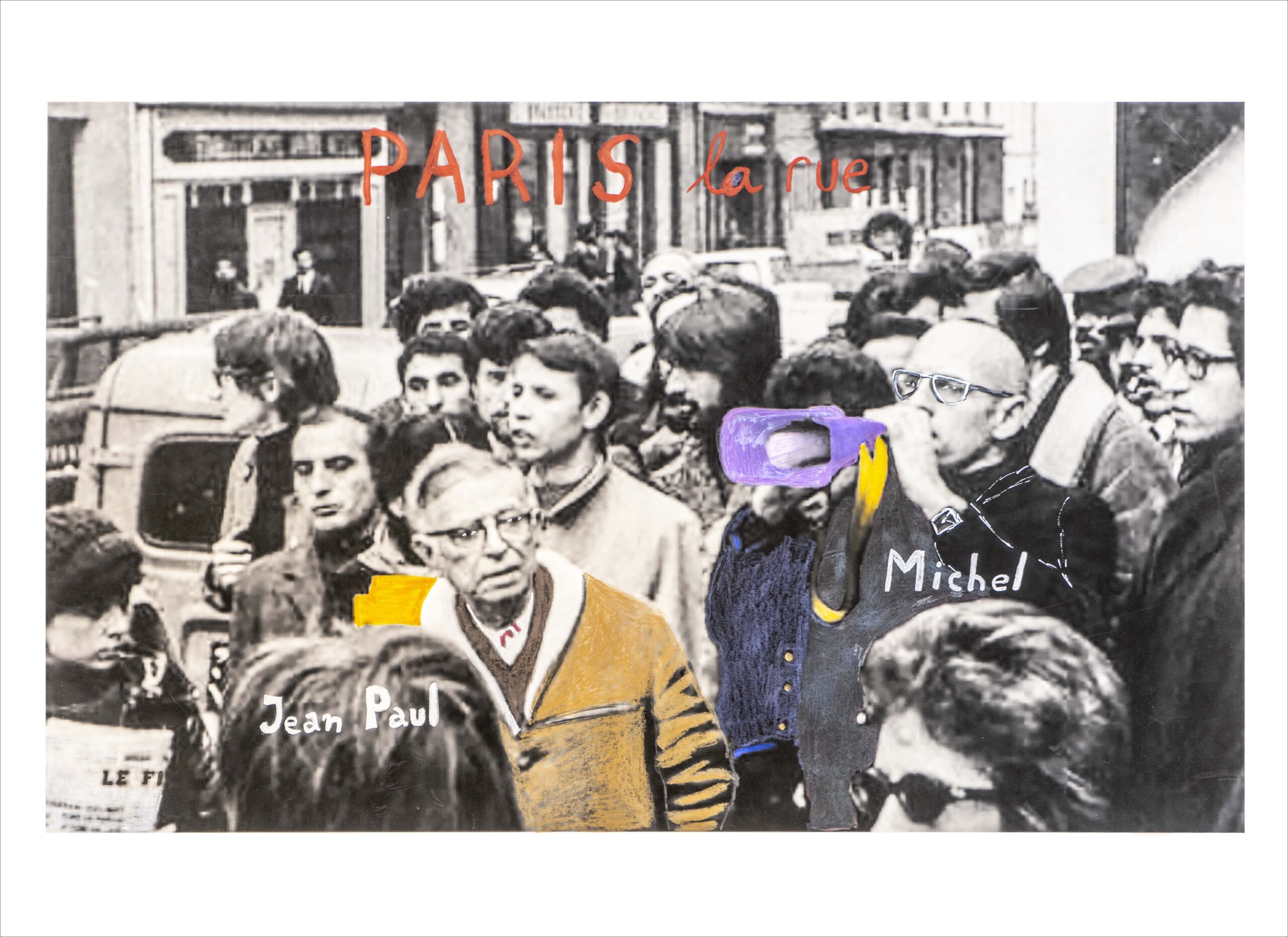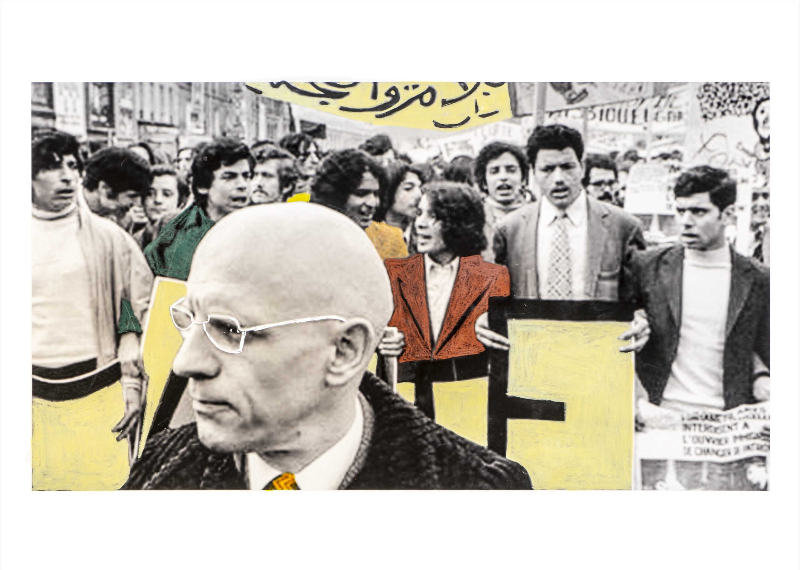 Fotografía de archivo blanco y negro de Gerard-Aime intervenida a mano por Marcelo Brodsky