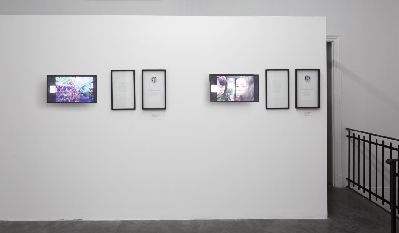The recovery and manipulation of the cinematographic apparatus, plus the appropriation and recovery of film files, its new digital register and the return to the photochemical support, are mixed and culminated in the film projection and in the exhibition of its machinery in the form of installation. The deployment of the apparatus, the running of the film, the auger, the beam of light that comes out of the projectors and the resulting image is a process of combinatorial between media.